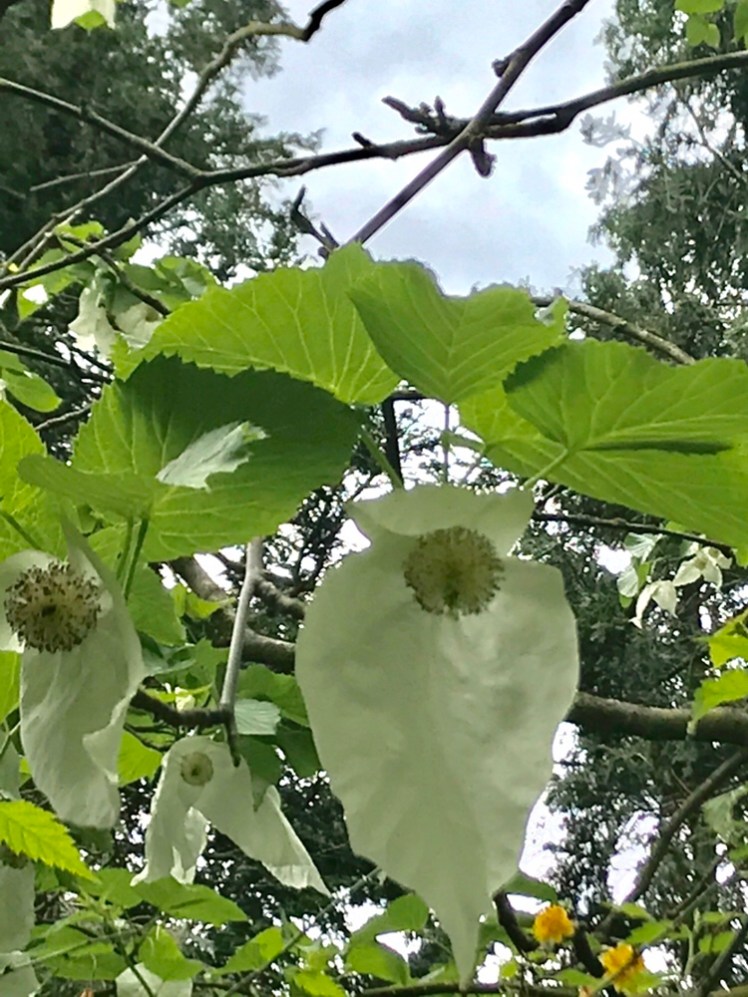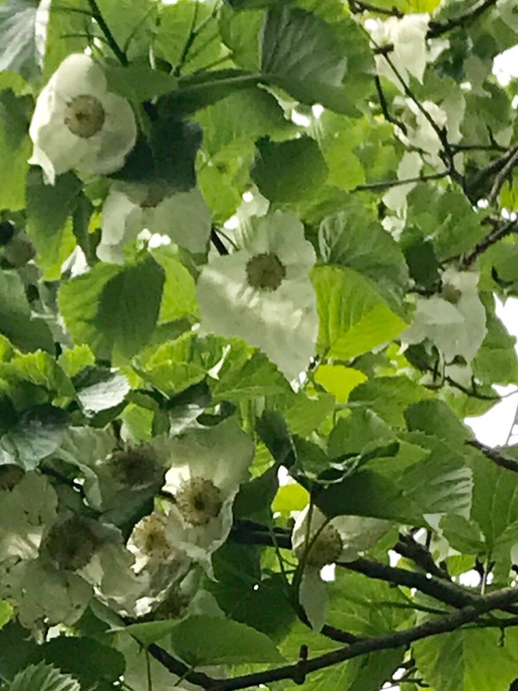 Usually a special trip to Batsford arboretum is on the cards at about this time of year to see the beautiful handkerchief tree. A surprise today , almost hidden by other trees next to the church in Abington Park , Northampton I spied a gorgeous tree.