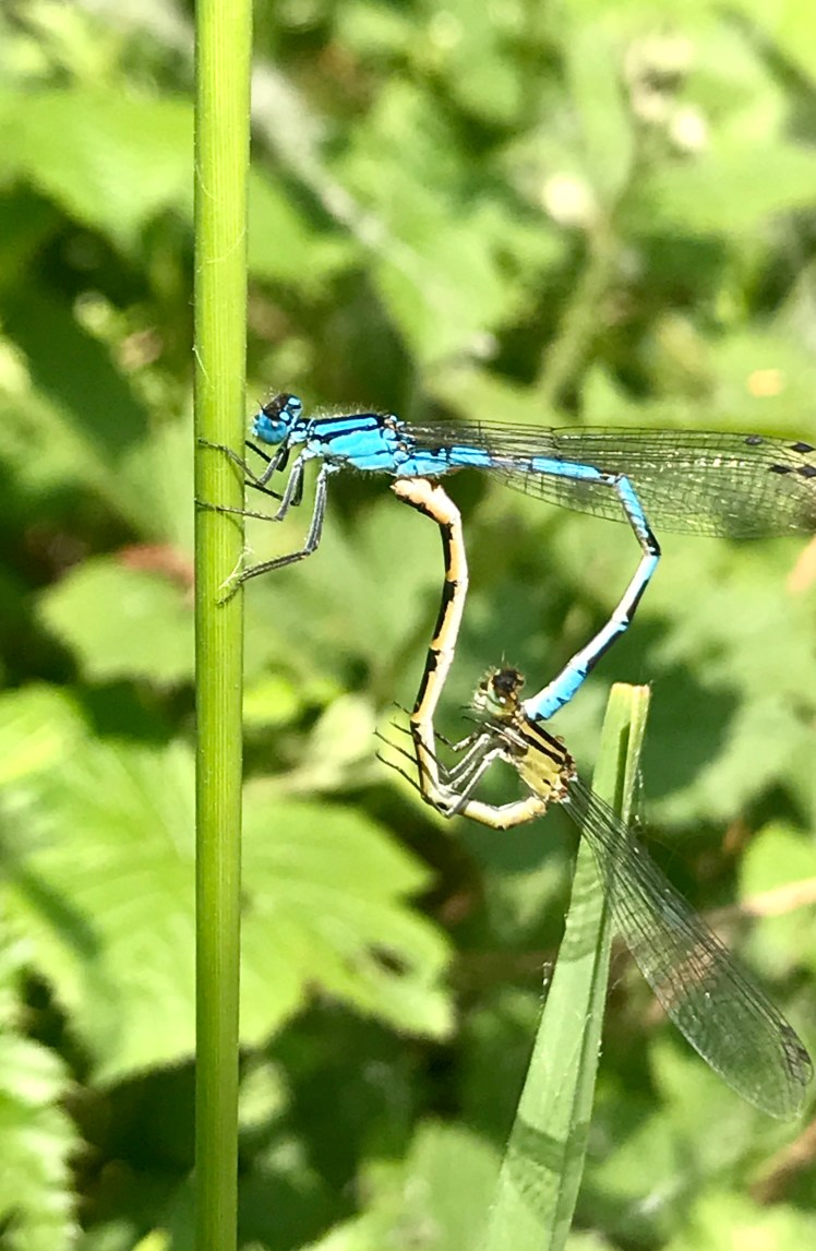 Today the Damselflies were literally in clouds around you along the waters edge. Standing still I counted 60 plus just bumbling around lots of them mating . The numbers were amazing .