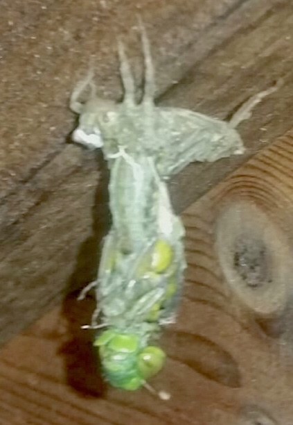 This dragonfly was emerging inside the chicken shed. Hopefully it flew out safely , escaping any hungry chickens.