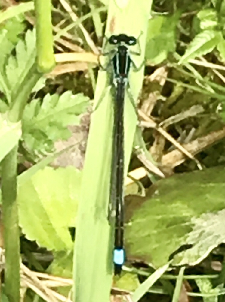 Damselflies- lots but one I haven’t seen here before with a distinctive blue band at the base of the abdomen called blue tailed Damselfly (Ischnura elegant)