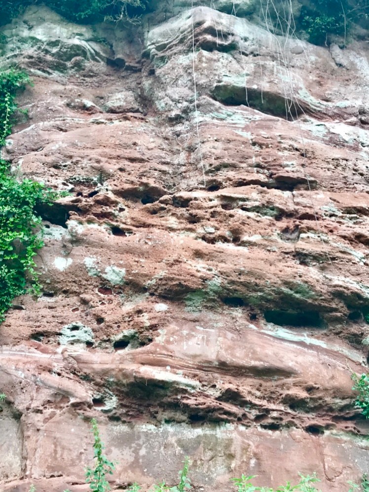 Along the road on the way to the river Wye in Riss on Wye are some brilliant red rock exposures.