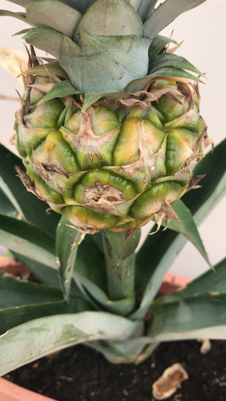 I have a perfect little pineapple plant .It looks so great as it is ripening I wanted to share its perfection. • Scientific name: Ananas comosus