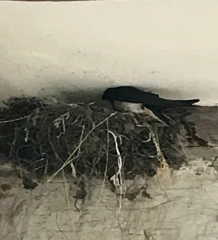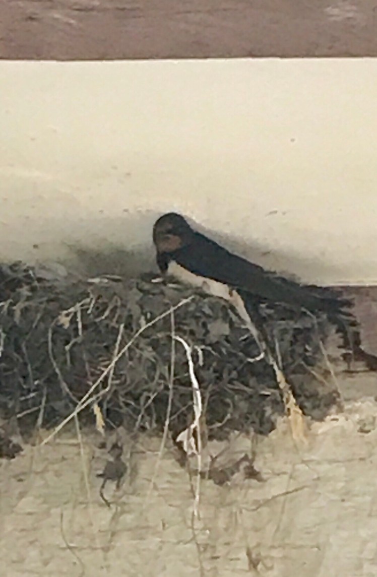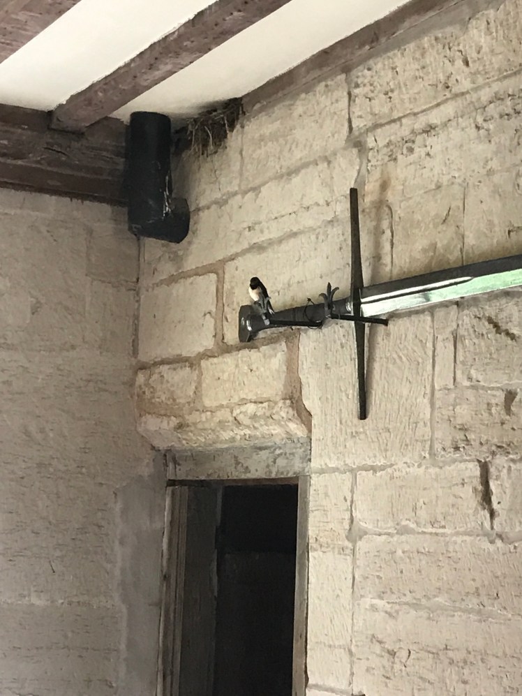 A day of birds, Swallows building nests and feeding their young in a doorway of a 14th Century Manor House, sometimes perching on a giant sword !