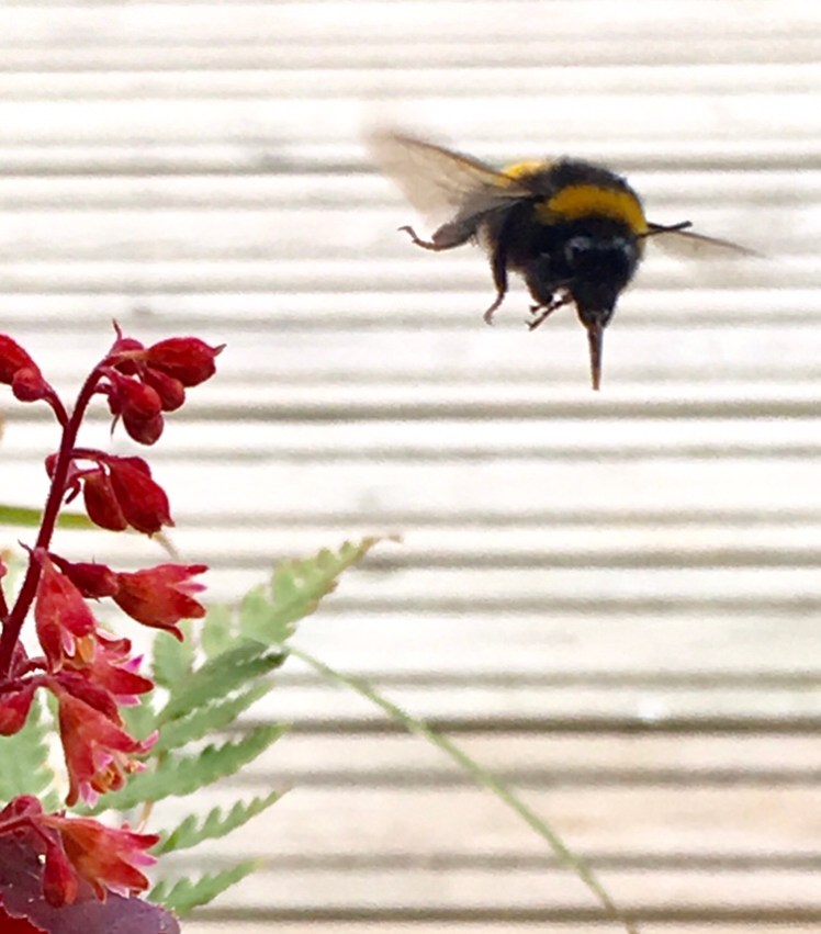 In the photo you can see amazing mouthparts. Bumble bees have a long reddish coloured tongue which is hairy at the end so they can soak up nectar.