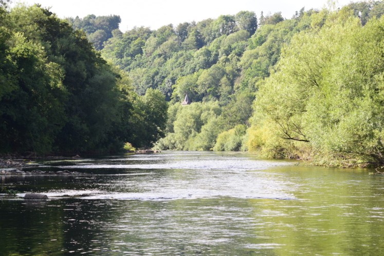 The river is gorgeous here. There were people swimming and brilliant damselflies and above us scurrying beavers !!