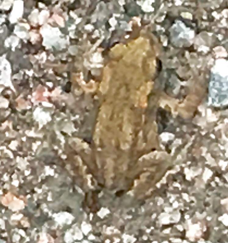 Another happy animal was a tiny frog , smaller than a 5p piece. It was so well camouflaged it caught my eye as it hopped at first I thought it was a grasshopper!! I did have my glasses on , on closer inspection it was a perfect extremely tiny frog.