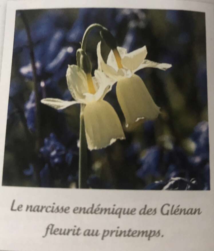 In 1974 part of the island of St Nicholas became a nature reserve because of the discovery of the small place yellow narsissi des Glénan . This was first discovered in 1803 by a chemist from Quimper. This protection has meant that the number of plants has increased from 1000 in 1980 to 150,000 in 2010.