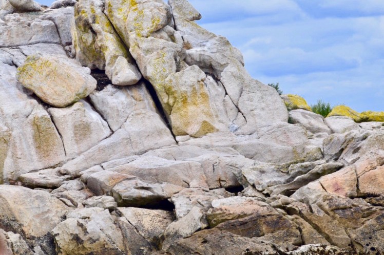Brittany has amazing granites , these are pink on the famous rose granite coast on the North . These granites become fantastic crystalline pebbles and pure quartz pebbles littered some beaches.