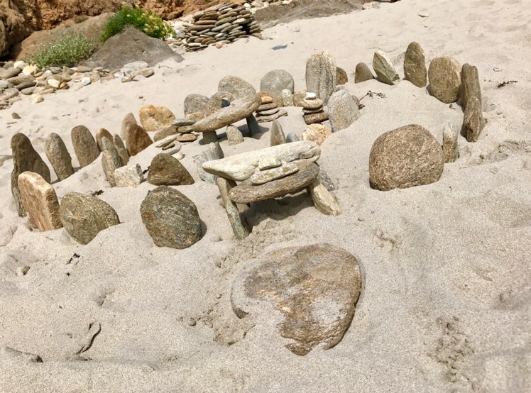The pebbles here are flat and sparkling and are often used to build for fun on the beach.