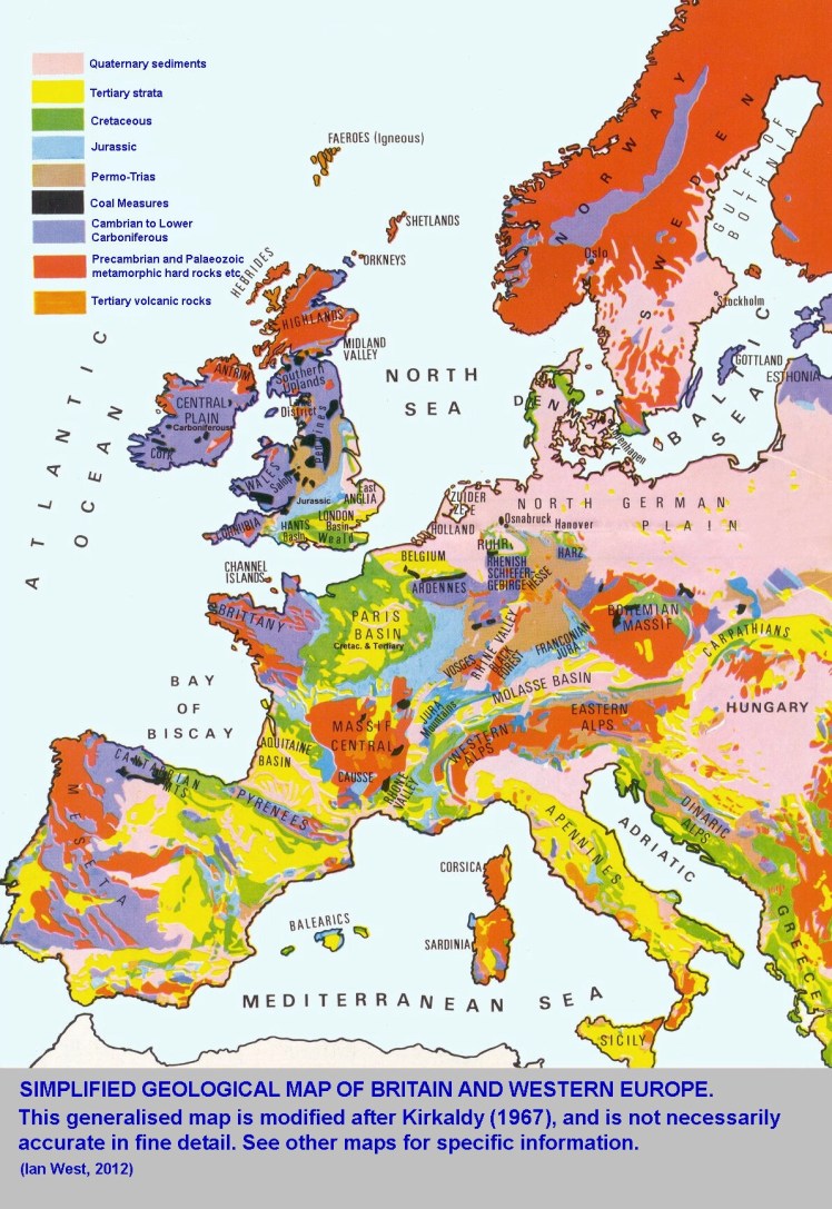 A brilliant geological map of Europe , interesting on its own but zoom in to holiday destination , Brittany.