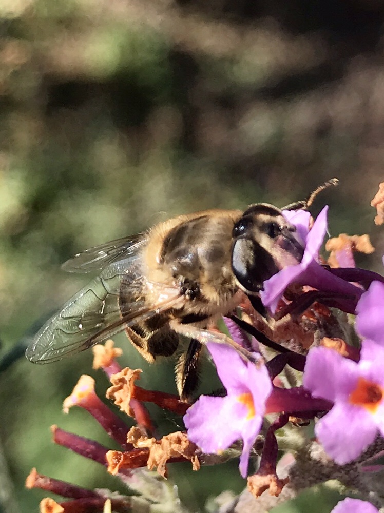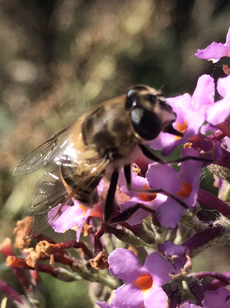 The Hoverflies were feeding in the sun yesterday . After looking in the field guide from the photos and where they were feeding I think this is Eristalis nemorum they mimic bees.