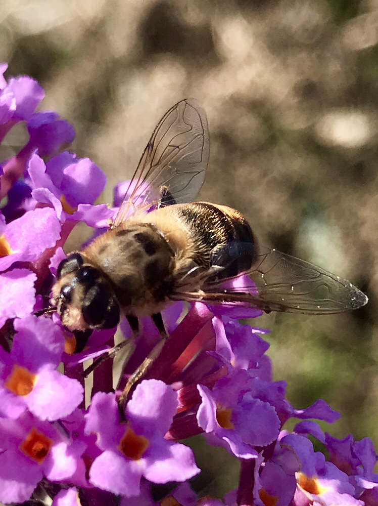 The Hoverflies were feeding in the sun yesterday . After looking in the field guide from the photos and where they were feeding I think this is Eristalis nemorum they mimic bees.