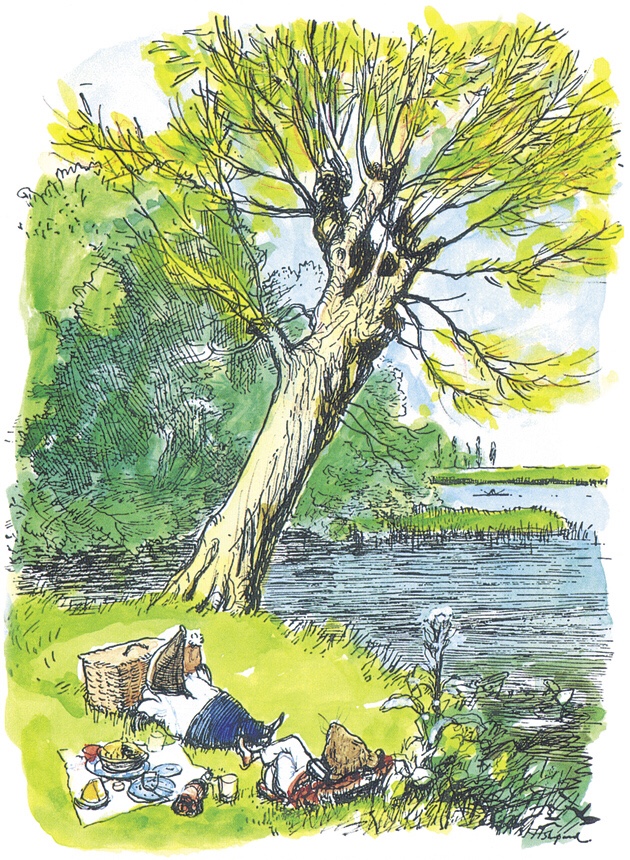 The Willow trees certainly didn’t look like this picture of Ratty and Mole happily picnicking and resting today.