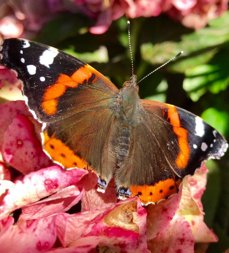 A little tatty around the edges but still flying and feeding in the Autumn sunshine the brightly coloured Red Admiral.