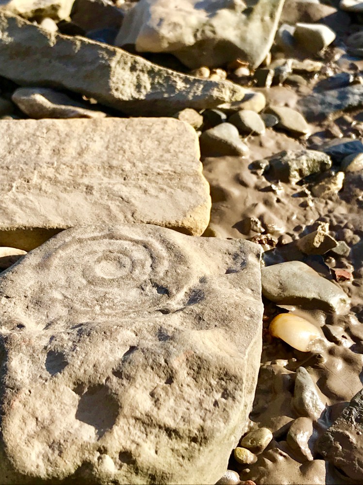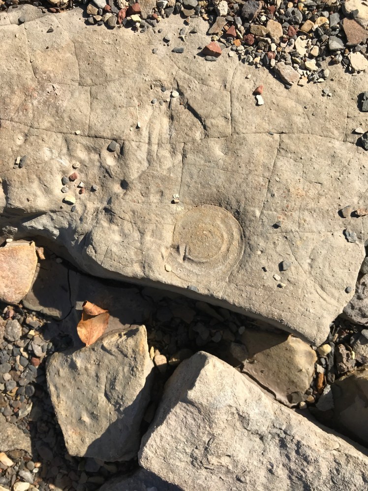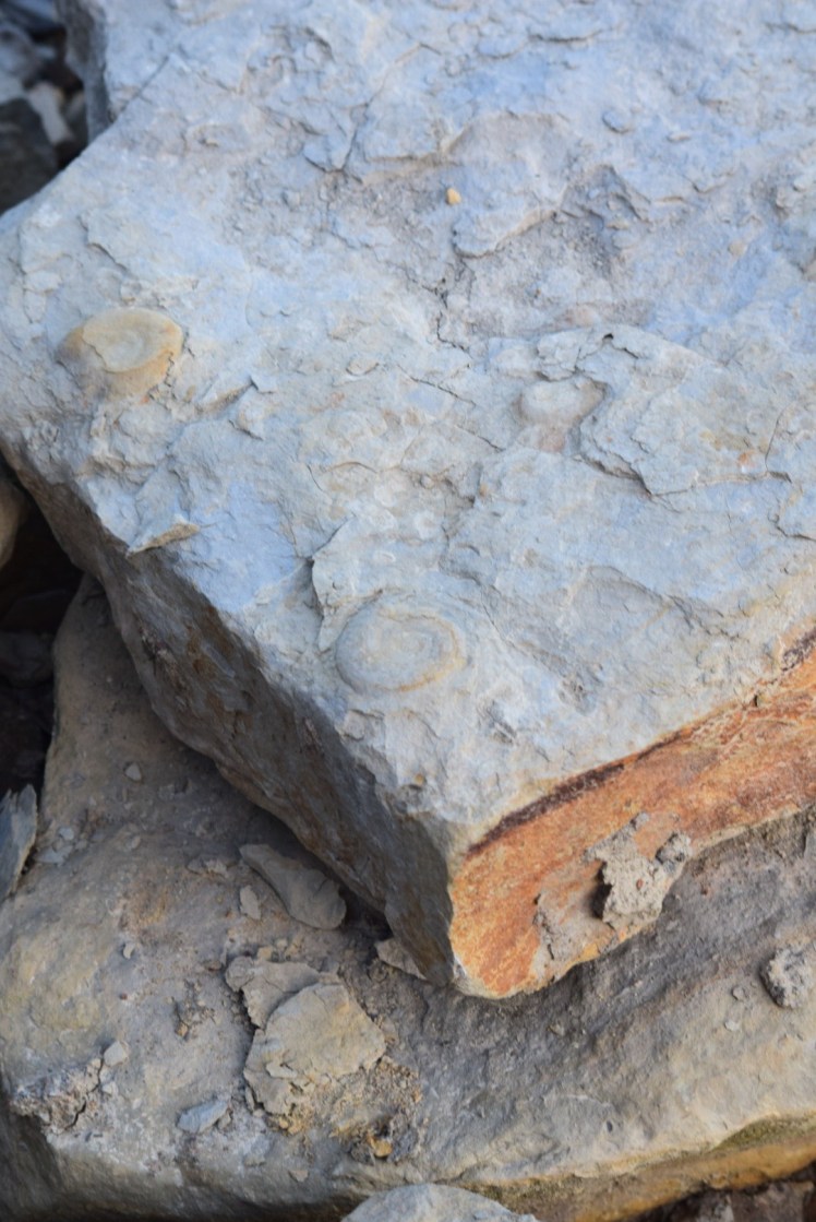 There are a large number of ammonites to be found some very flat and others well preserved with calcite crystals. There are also large numbers of bivalves and a large range in species and sizes. Crinoid discs and stacks of stems can be found in the gravel areas ( I really struggled to see these tiny star shaped finds as they were very small )