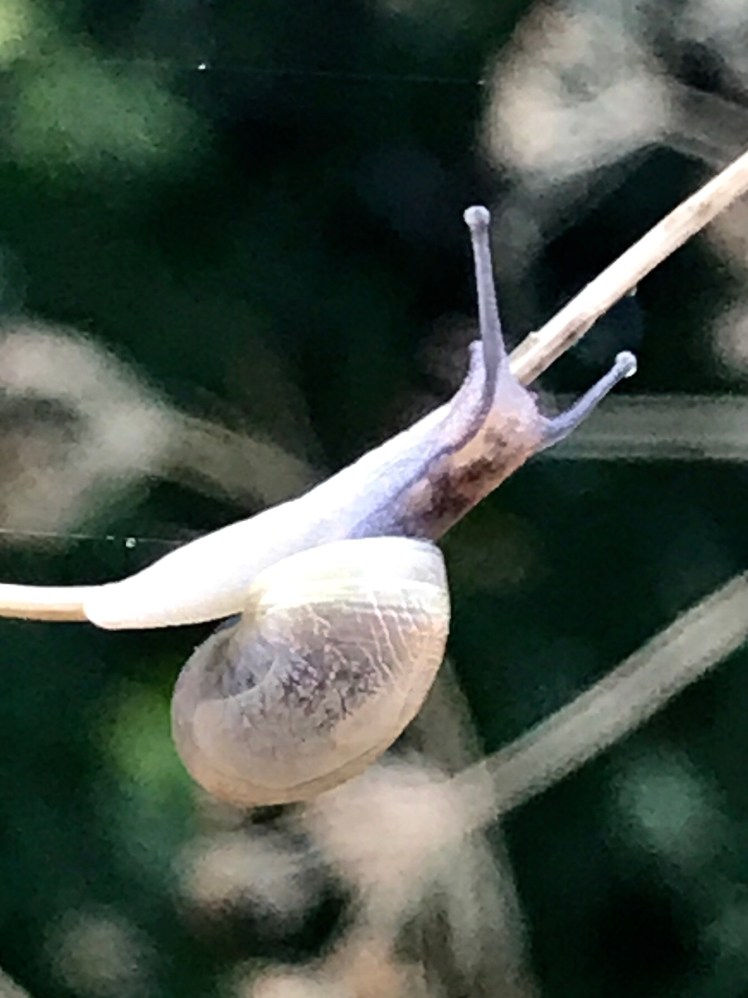 The snails below were all congregated on this broken stem , maybe going to eat the end part.
