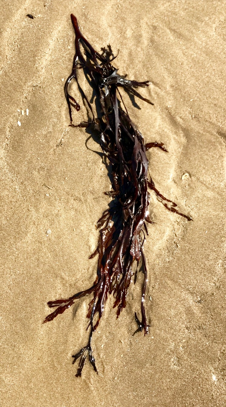 Across this expanse of sand with an incredible backdrop of snowdonia there are lots of great finds. Seaweeds freshly spat out at low tide like this wrack.