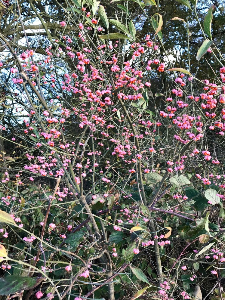 The berries are burdening trees with their weight. These spindle berries added a different colour to the normal reds and oranges.