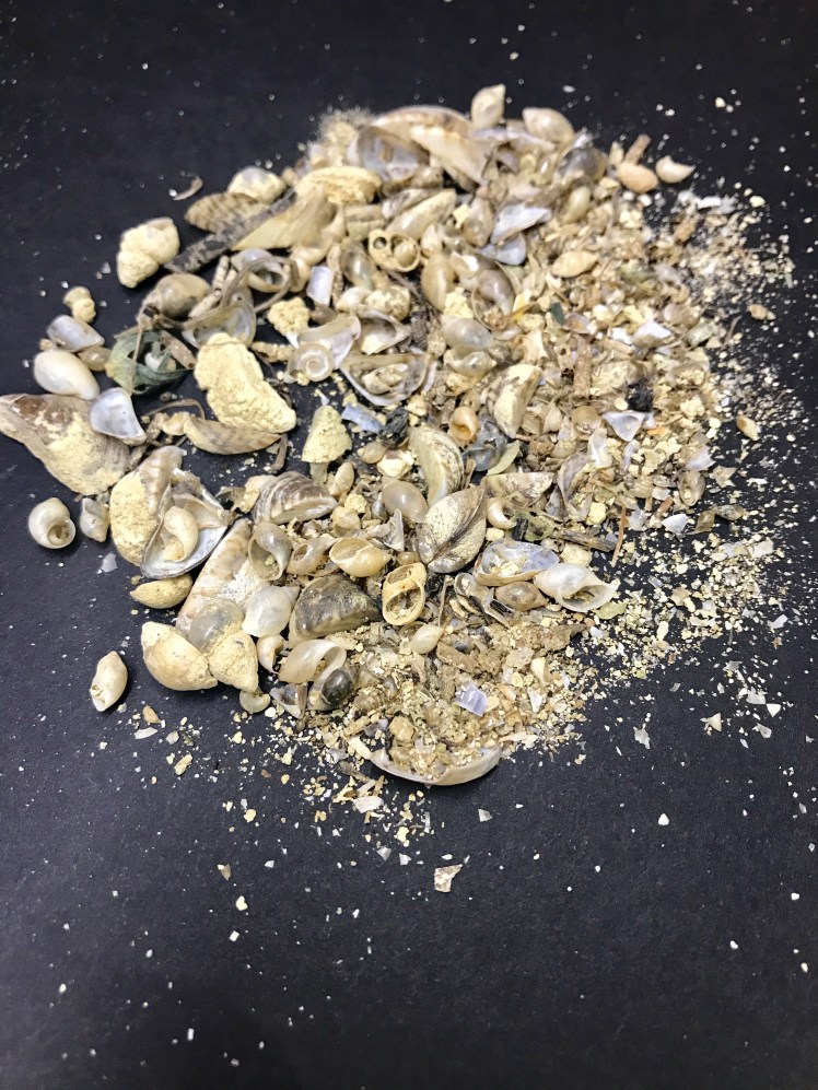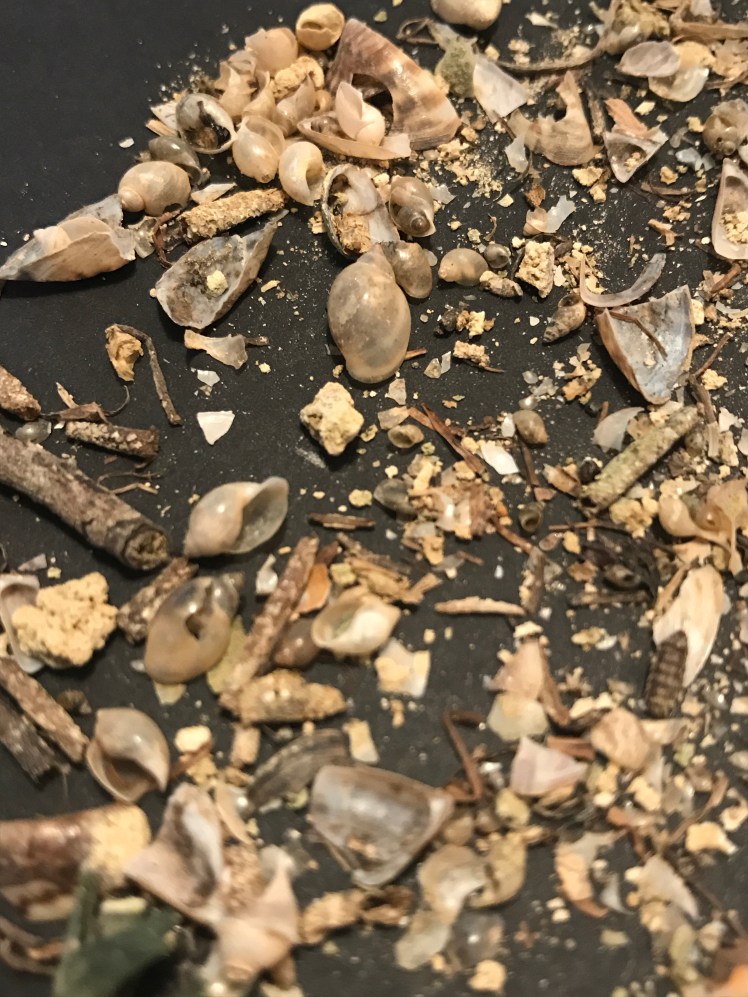 Finds from the shore:-a tiny scoop of shore sand ……..absolutely full of shells !