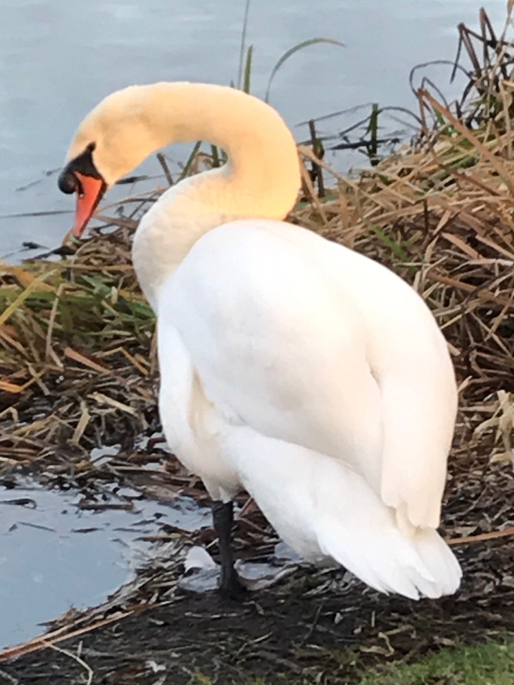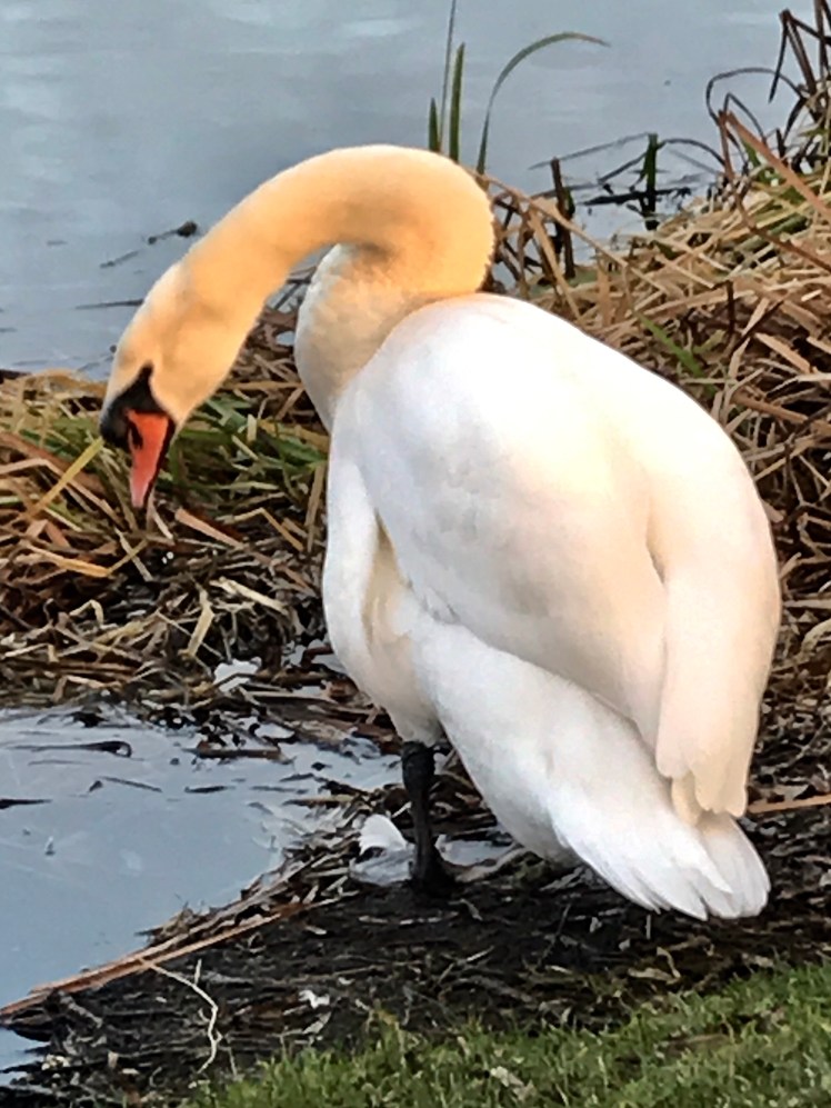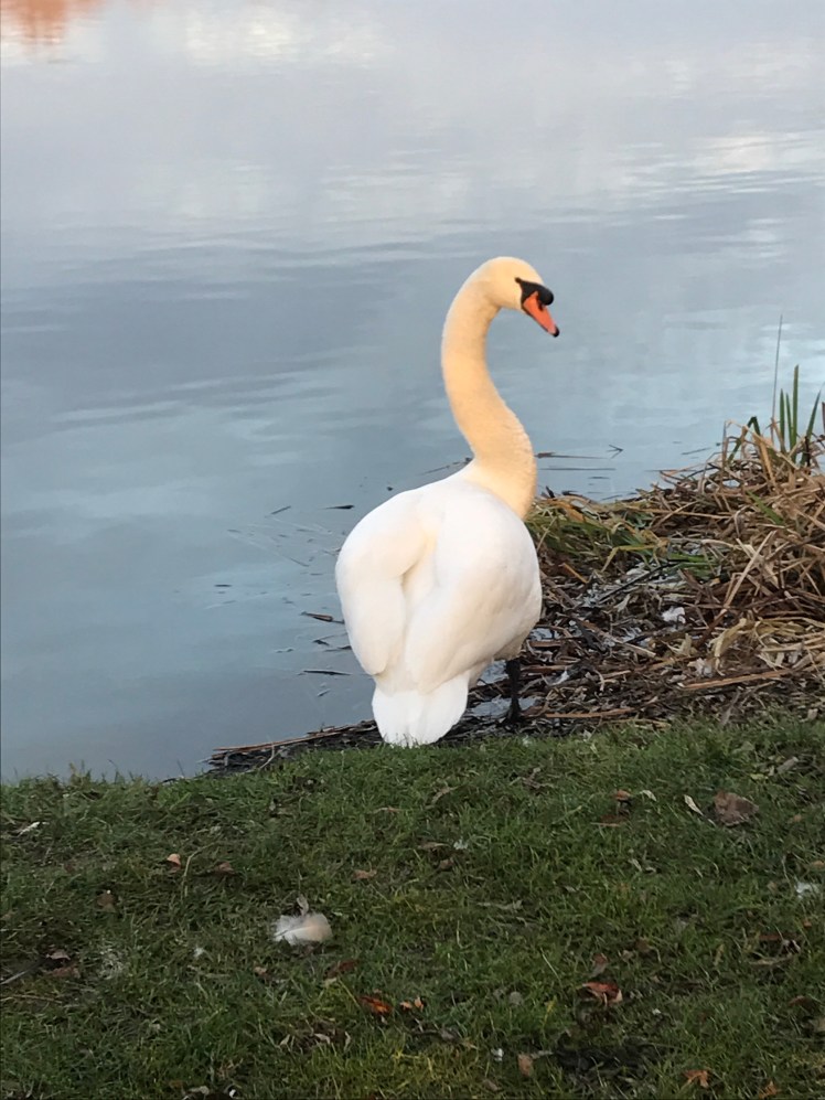 Today we had a late afternoon walk at the lakes in Rushden, where we walk often . Last year we saw some amazing wildlife at these local lakes. There are always swans to be seen, swimming, moulting, eating , nesting and lots more interesting behaviours including fighting between themselves.