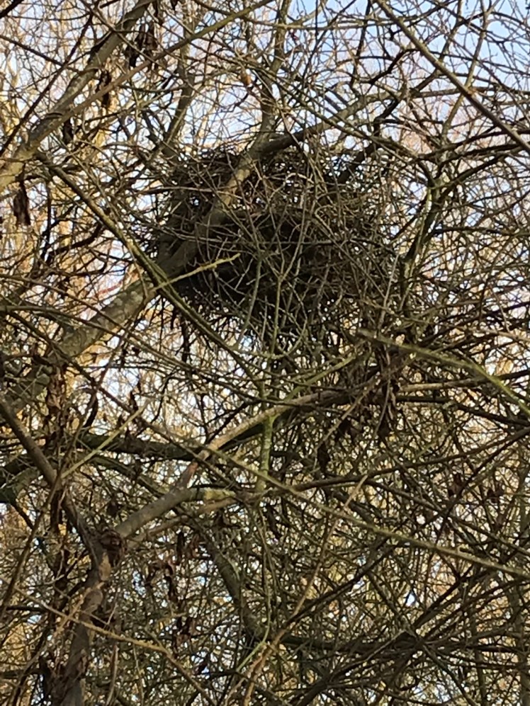 Birds nests from the past year are exposed, some of them carefully constructed or like this twig platform seem almost unfit for purpose.