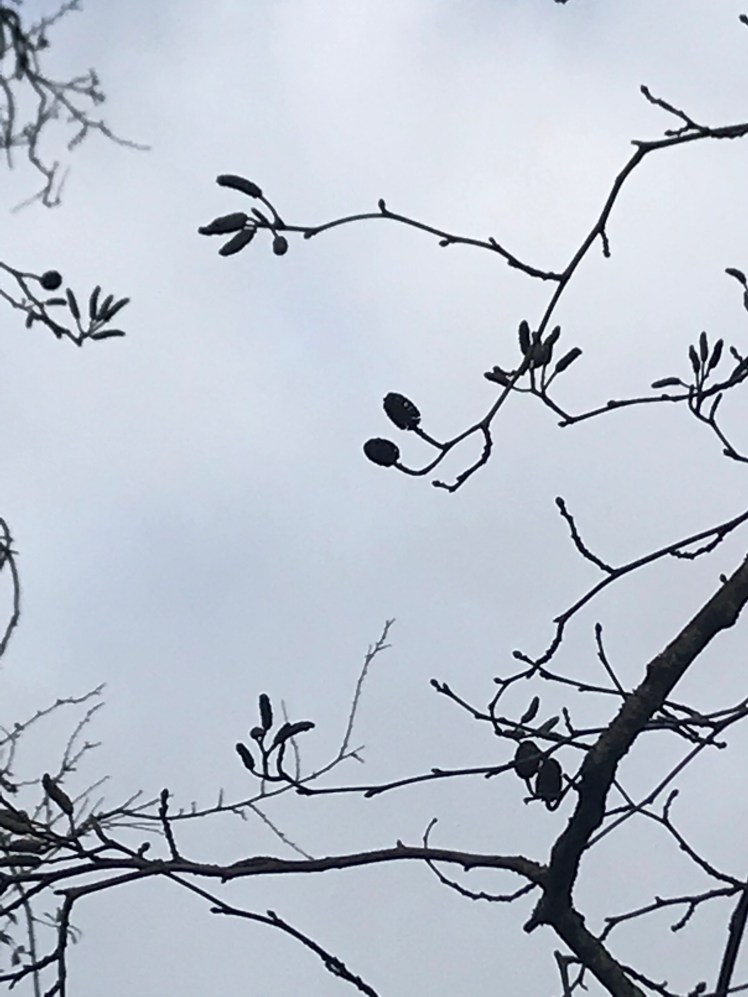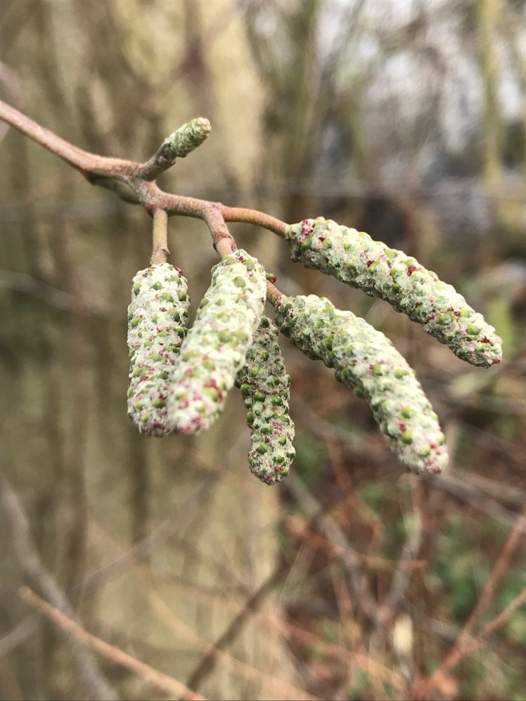 Today it came in very useful, I was thinking about the Alder trees I had noticed out walking today . The catkins were short and stocky , very tough compared to the hazel catkins I saw yesterday.