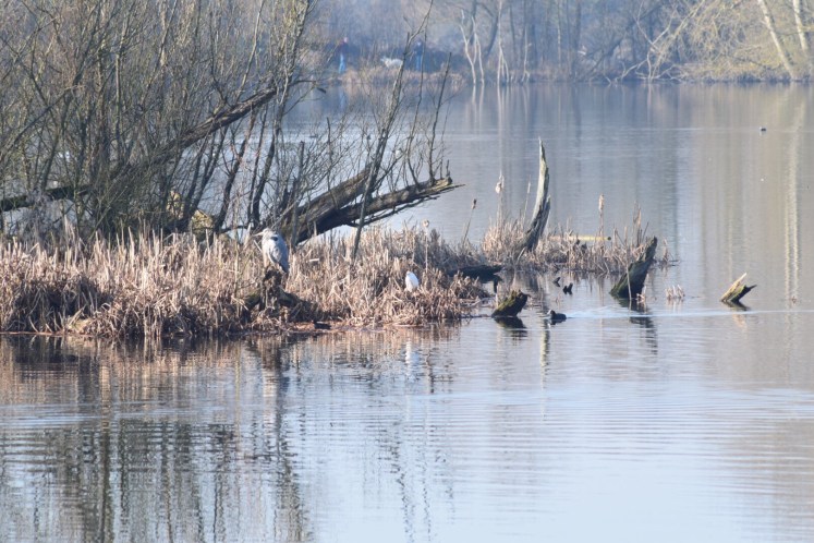 The very large lake had a super group sitting in prime fishing position, a Heron and an Egret.