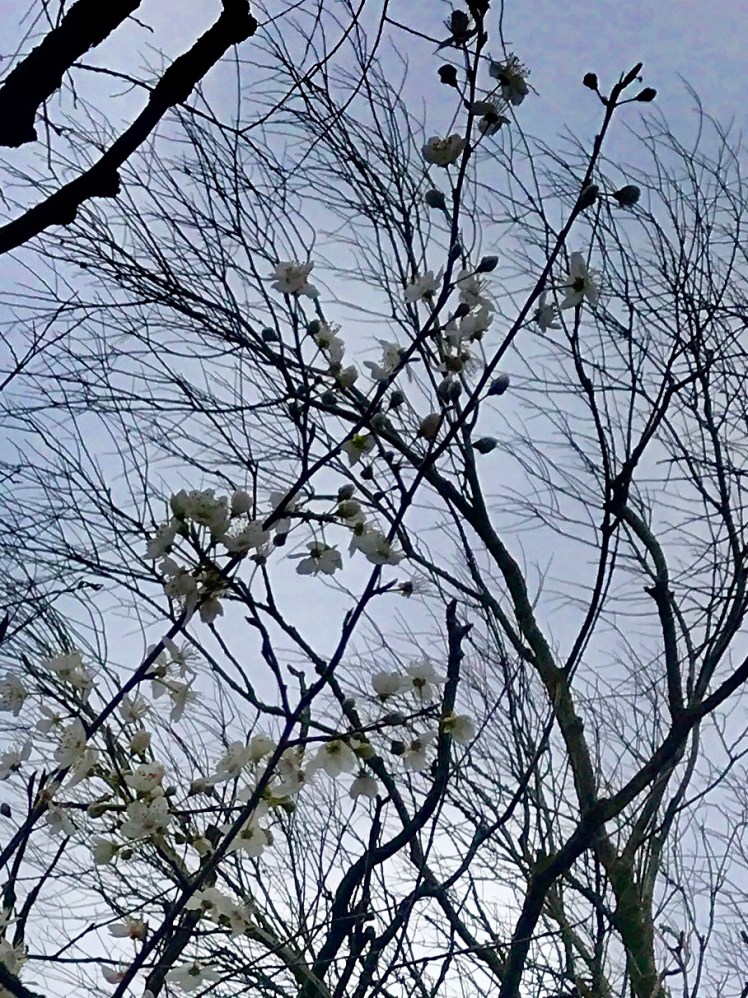Blossom is really starting to decorate trees , even on this rather grey walk.