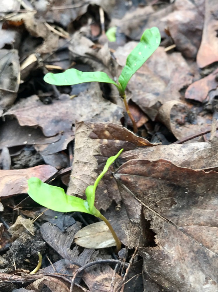 Last years helicopter seeds from the field maples are sprouting in carpets under their parents.