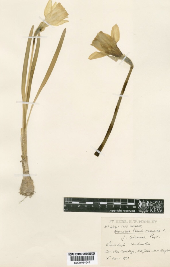 Here is a herbarium specimen from Herefordshire collected in 1931 , the time of the daffodil special trains .