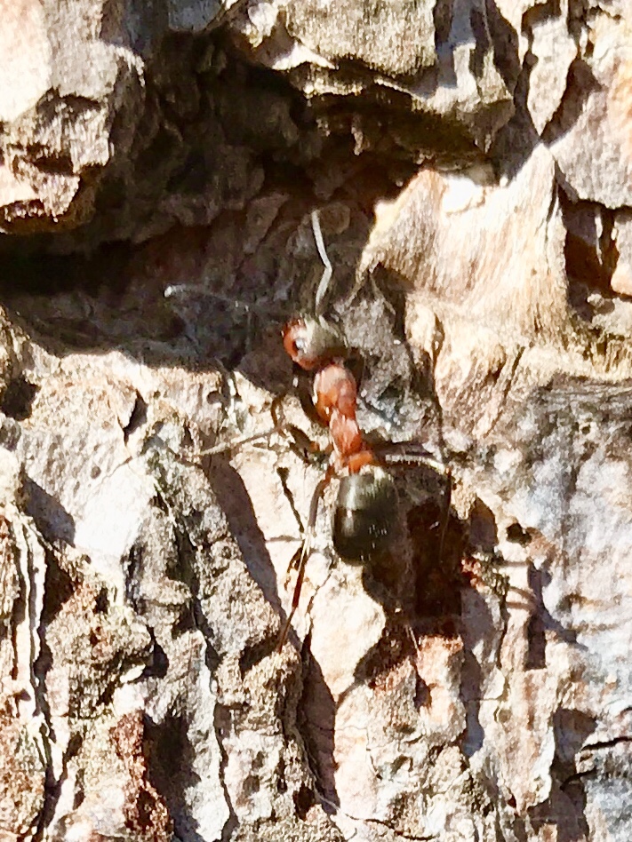 The ants are everywhere in the wood, they have large mounds for the colony , they are foraging across the floor and scaling high up the trees.