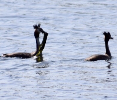 Birds were busy , Great Crested Grebes were in pairs and showing off with weed trying to impress a mate.