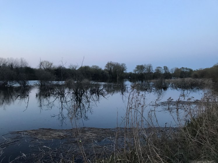 Back along the lake side coots were flapping across the water, Moorhens were walking over rafts of reeds off to roost.