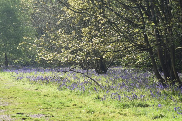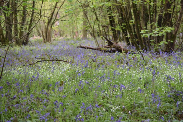 These broadleaf woods with areas of open glades , coppiced trees and large older trees is carpeted in beautiful bluebells ( Hyacinthoides non-scripta)