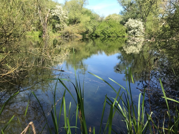 This is a path we often explore it runs parallel to the river. The small lake looked lovely in the sun .