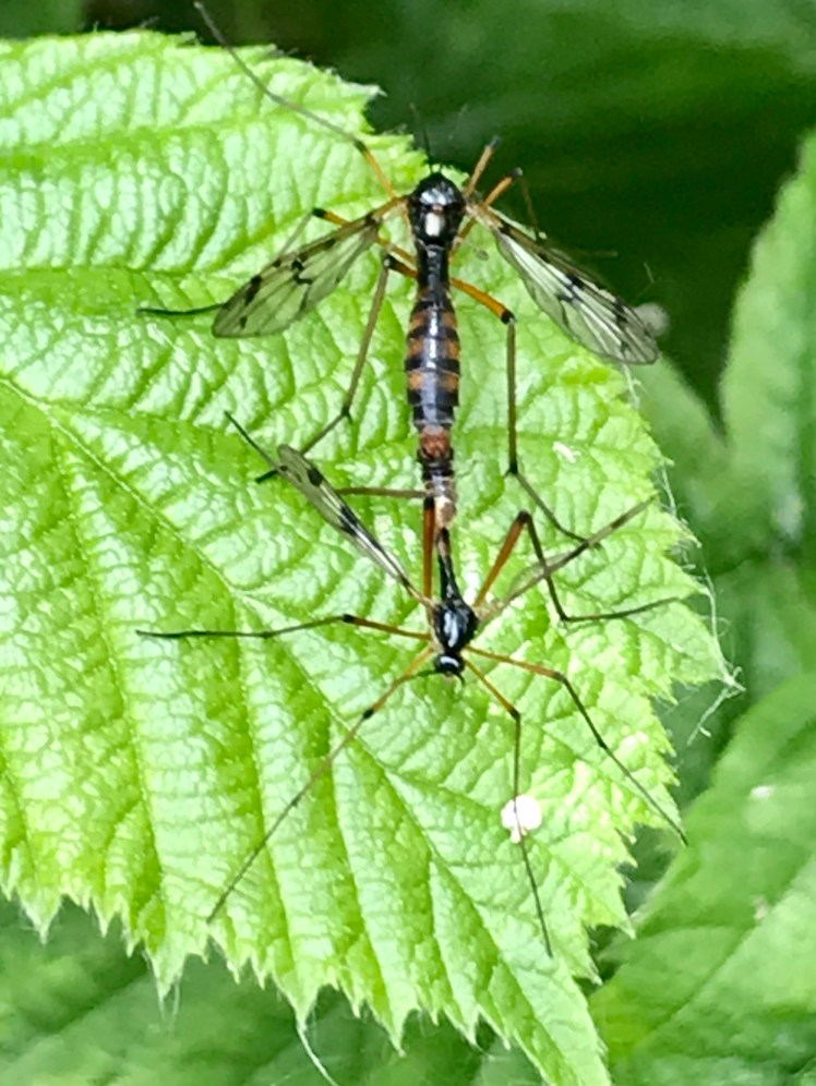 I love the high gloss and it is found near water margins , Latin name Ptychoptera contaminata. There are only seven species in this family of insects. The larvae live in mud in the shallow water and have long breathing tubes.