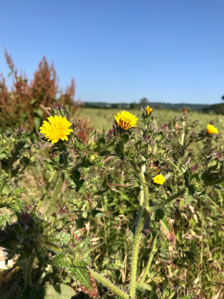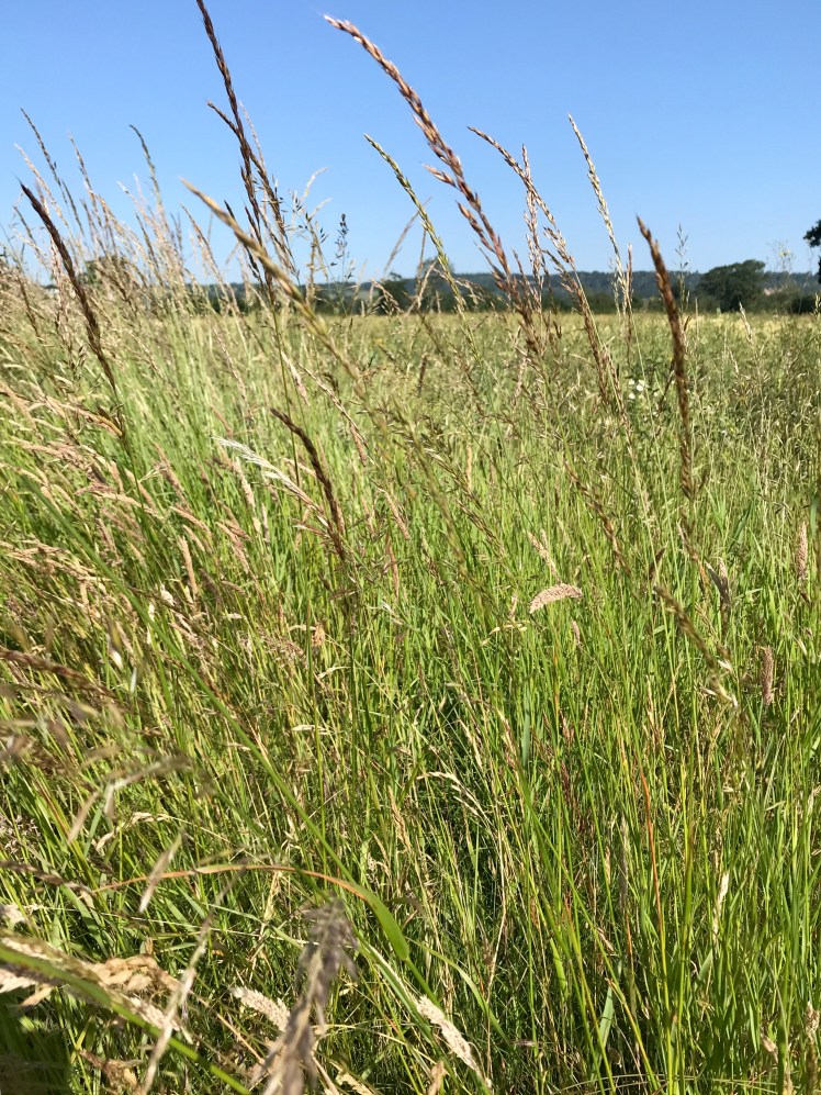 As you can see the view from the car park is rather nice, looking over back towards Moreton-in-Marsh. The field was full of flowers and grass. A few years ago this was a wheat field and there are still some wheat plants growing in it.