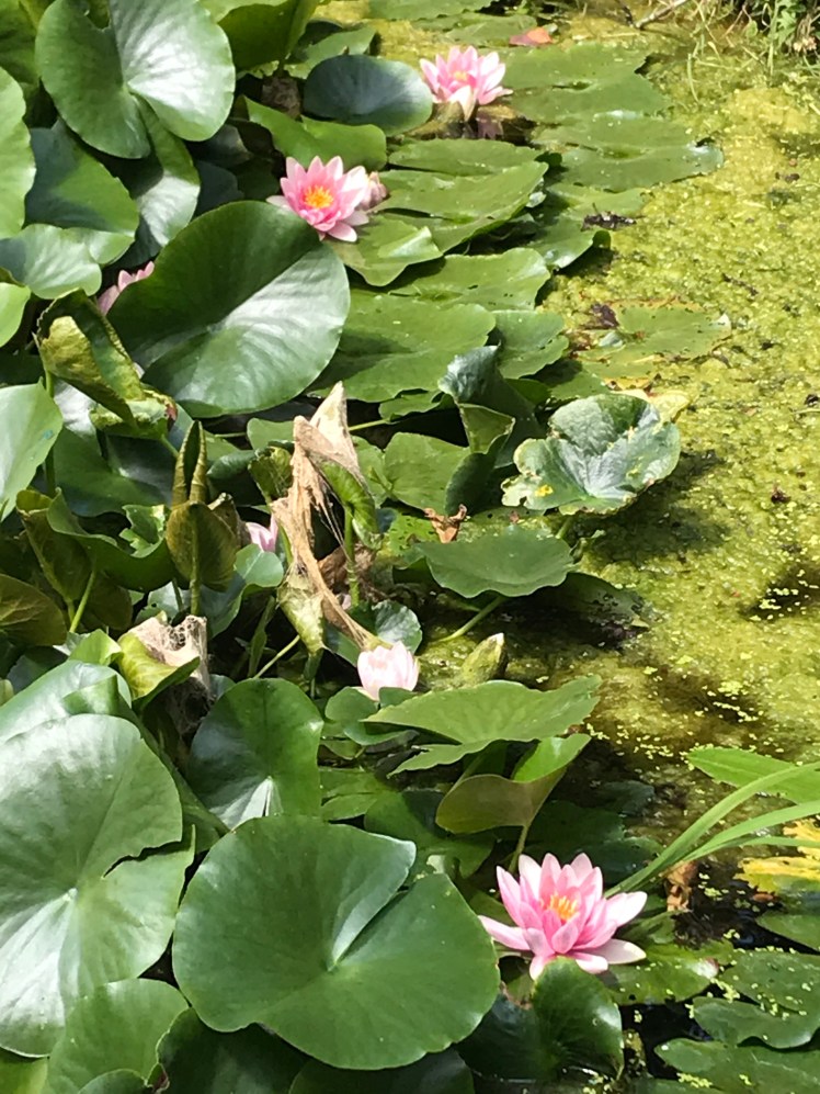 Walking back down with the waterway on my right it winds and falls with pools visited by thirsty blackbirds. The large pool is full of waterlilies.