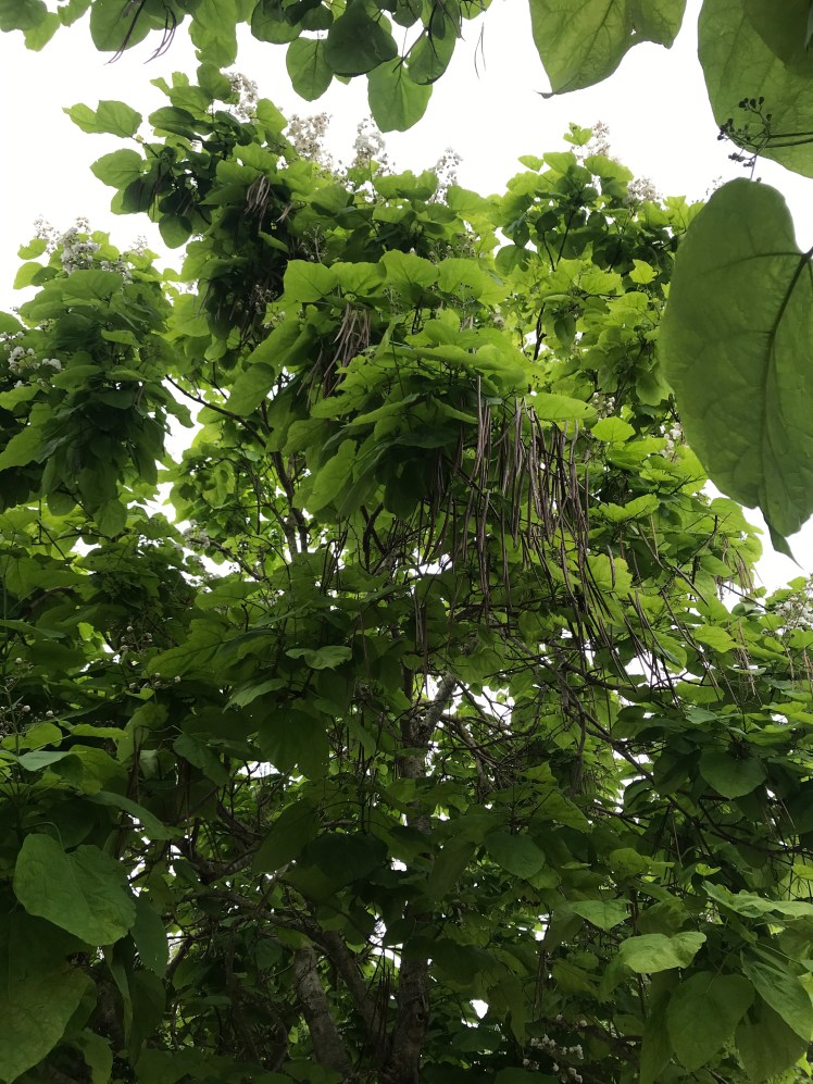 I love these trees , I have posted about them before at Batsford Arboretum and in the parks in Northampton. They have so many attractive features , large soft light green leaves, beautiful flowers( these are what caught my eye today), long beans hanging down and an overall attractive shape.