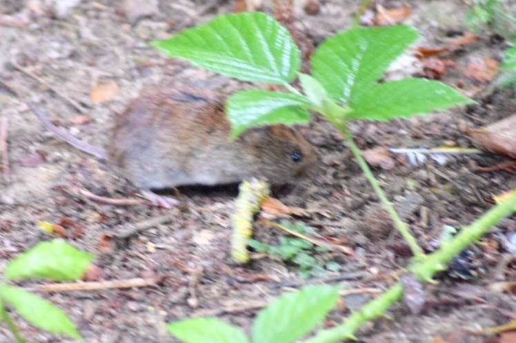 The brambles made a great hiding place for the vole , hopefully it feasted on blackberries for pudding !!