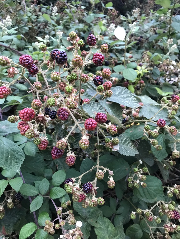 These blackberries are just around the corner from my house by the post box.At the bottom of the hill they are amazing. Each year people turn up with step ladders and containers and set to work on this blackberry bonanza.