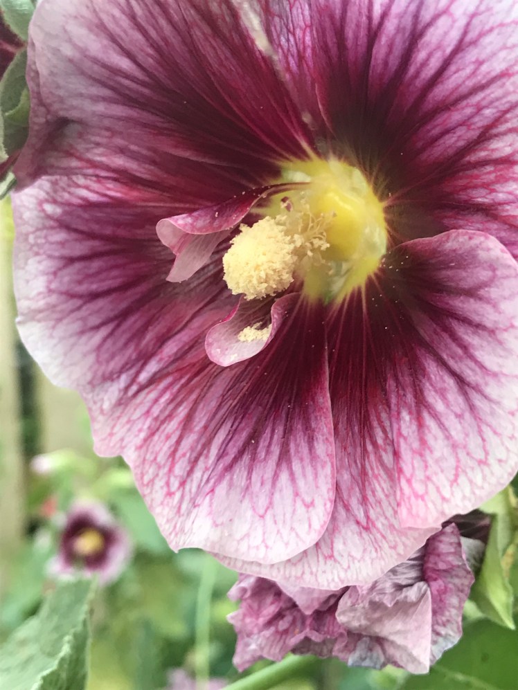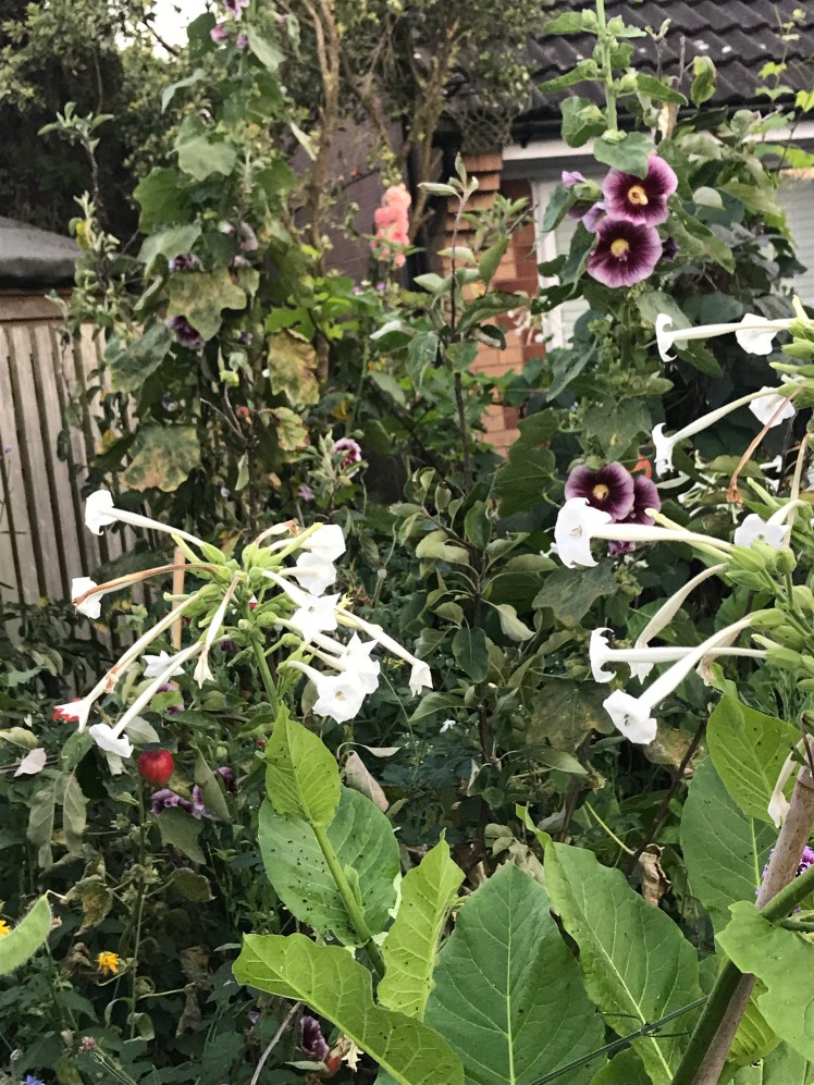 The tall verbena and amazing hollyhocks are smothered in bees, bumble and honey