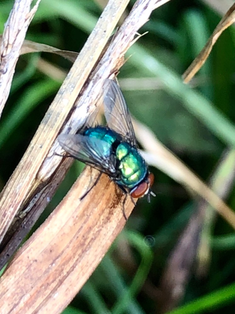 The flies were emerald like in the sun.