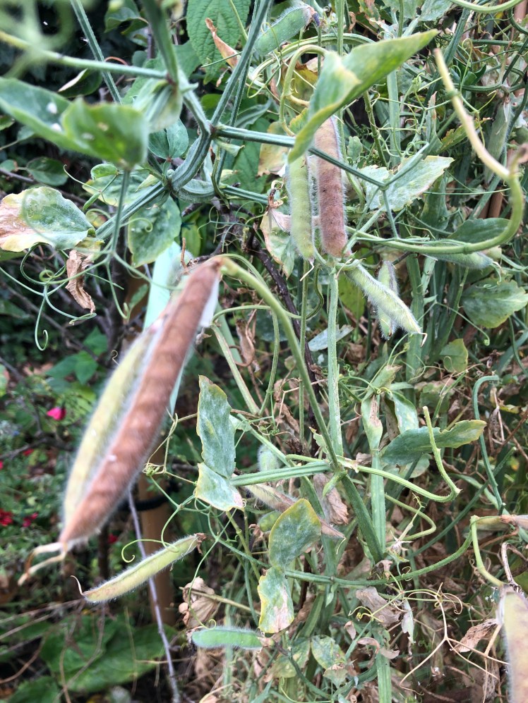 I am waiting to harvest sweet peas seeds and purple french beans.