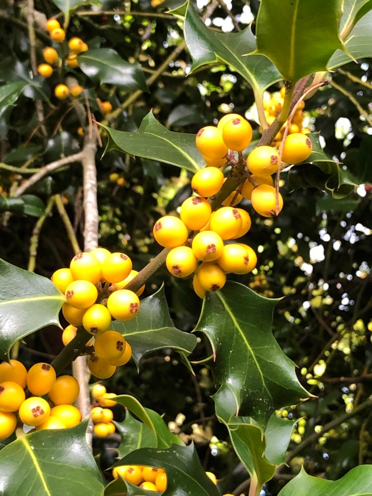 An unusual yellow holly caught my eye , it would look lovely With the Christmas flowers.