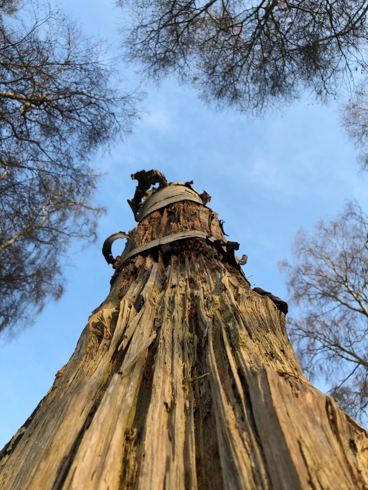 Today has been very blustery but the skies have been bright blue and the temperature very mild. The trees look spectacular against the blue backdrop even the stumps.