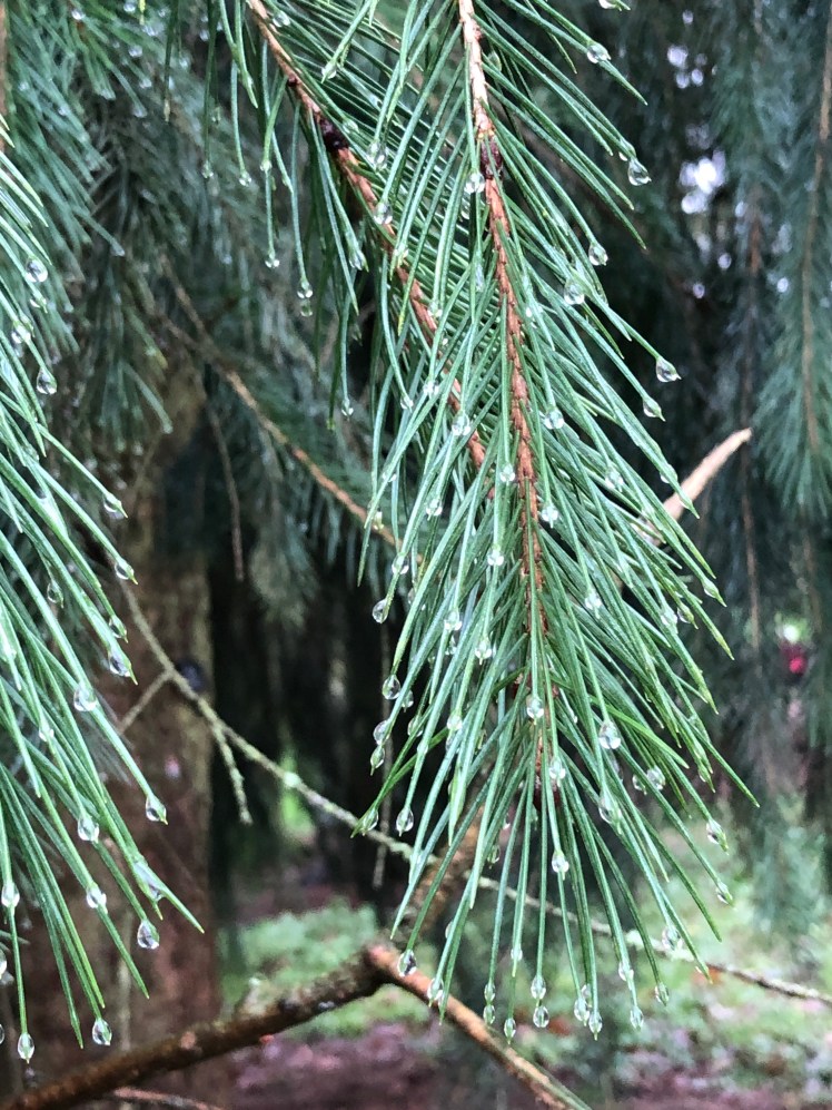 At the end of each pine needle there was a perfect drop of water, decorating the tree.
