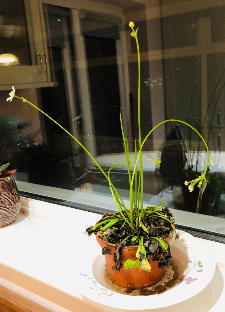 My Venus flytrap has been shooting up flower stalks and promising flowers for weeks. They have tight buds that seem to take ages to open.