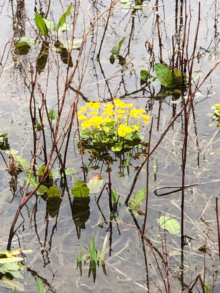 A walk by the lake in the rain was brightened up by marsh marigolds (Caltha Palustris) I love these plants they are so bright and cheer up a grey day.