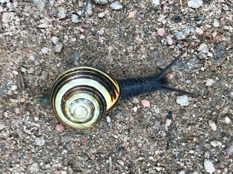 At the base of the hillside I followed a stream in woodland full of shade with hostas and ferns.